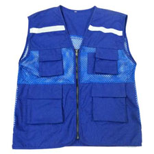 - Chất liệu: vải kaki + vải lưới (mắt to). Kiểu dáng: áo gile, phản quang, có 4 túi. Màu sắc: màu xanh dương. Size: M, L, XL