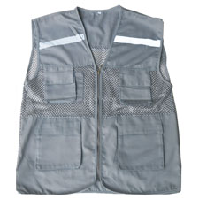 - Chất liệu: vải kaki + vải lưới (mắt to). Kiểu dáng: áo gile, phản quang, có 4 túi. Màu sắc: màu ghi sáng. Size: M, L, XL