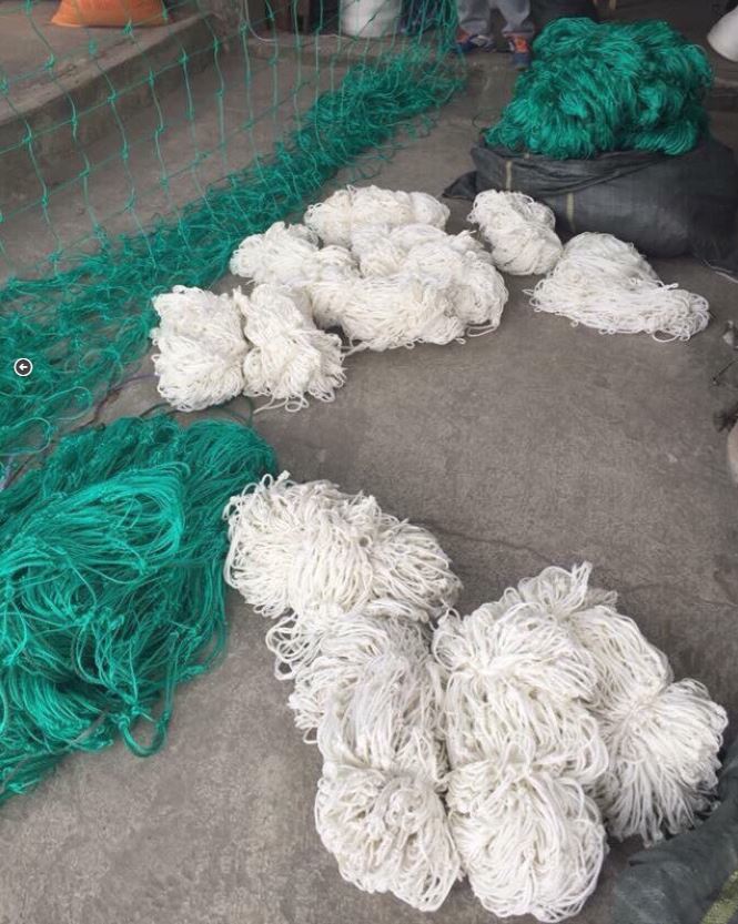 Chất liệu: Sợi cước màu xanh ngọc, đen, xám, xanh lá. Sợi dù màu trắng.